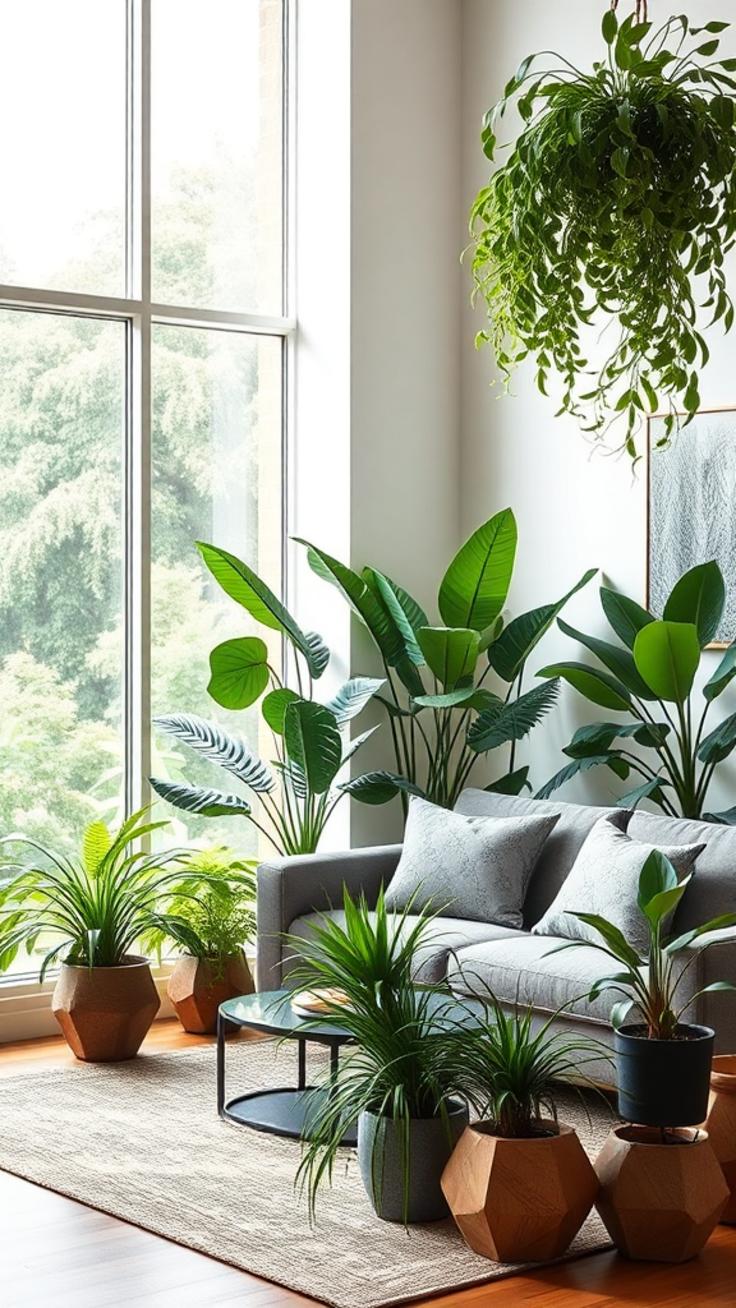 - Grüne Pflanzen wie Monstera, Efeu oder Farn für luftige Akzente