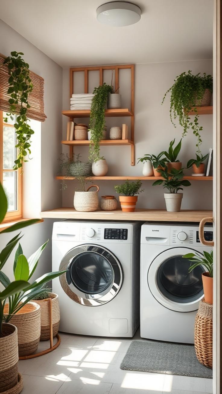 Natürliche Elemente schaffen eine harmonische Atmosphäre und machen die Waschküche zu einem angenehmen Rückzugsort. Gerade in Funktionsräumen ist es wichtig, durch organische Materialien und Pflanzen das Raumklima zu verbessern und gleichzeitig für eine visuelle Entspannung zu sorgen.