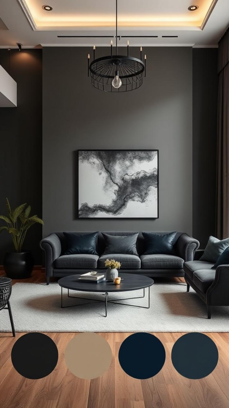 Charcoal Black Luxus im Wohnzimmer kombinieren für edle Akzente