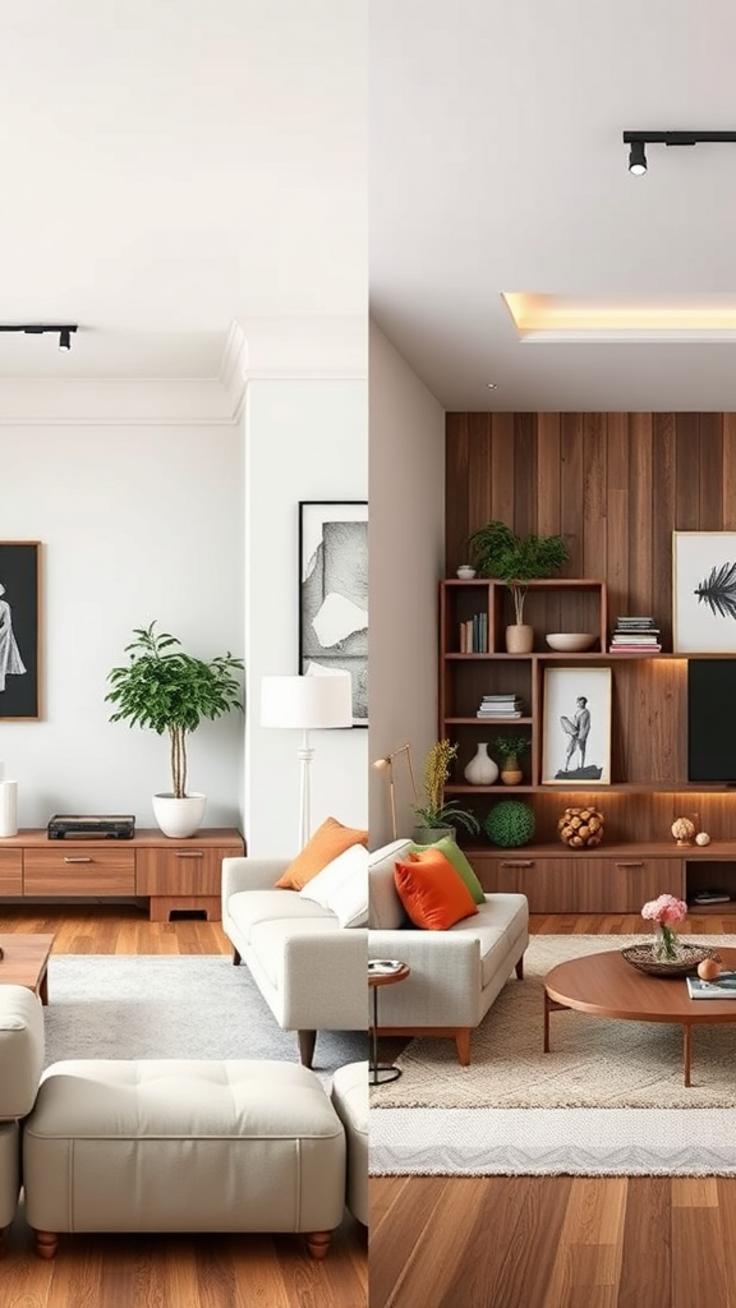 Ein weiterer Tipp ist die Verwendung einer Grundfarbe, die sich in Möbelbezügen, Wandfarben und Accessoires wiederfindet. So wirkt der Raum stimmig und durchdacht. Farbkombinationen wie Blau und Gelb oder Grün und Terrakotta setzen frische Akzente und bringen Dynamik in die Einrichtung. Kombinieren Sie kräftige Farbtöne am besten mit neutralen Elementen, um ein ausgewogenes Gesamtbild zu gewährleisten.