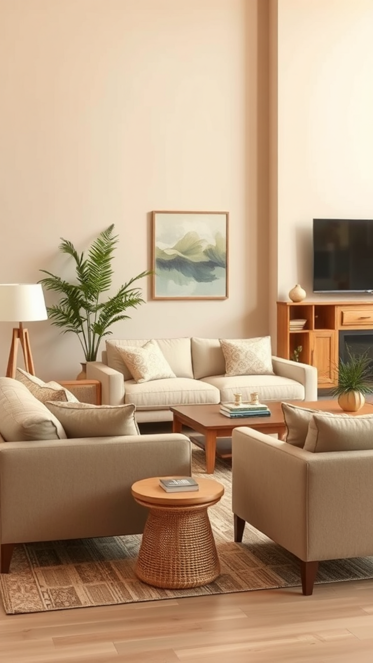 - Warme Braun- und Beigetöne für Wände und Möbel