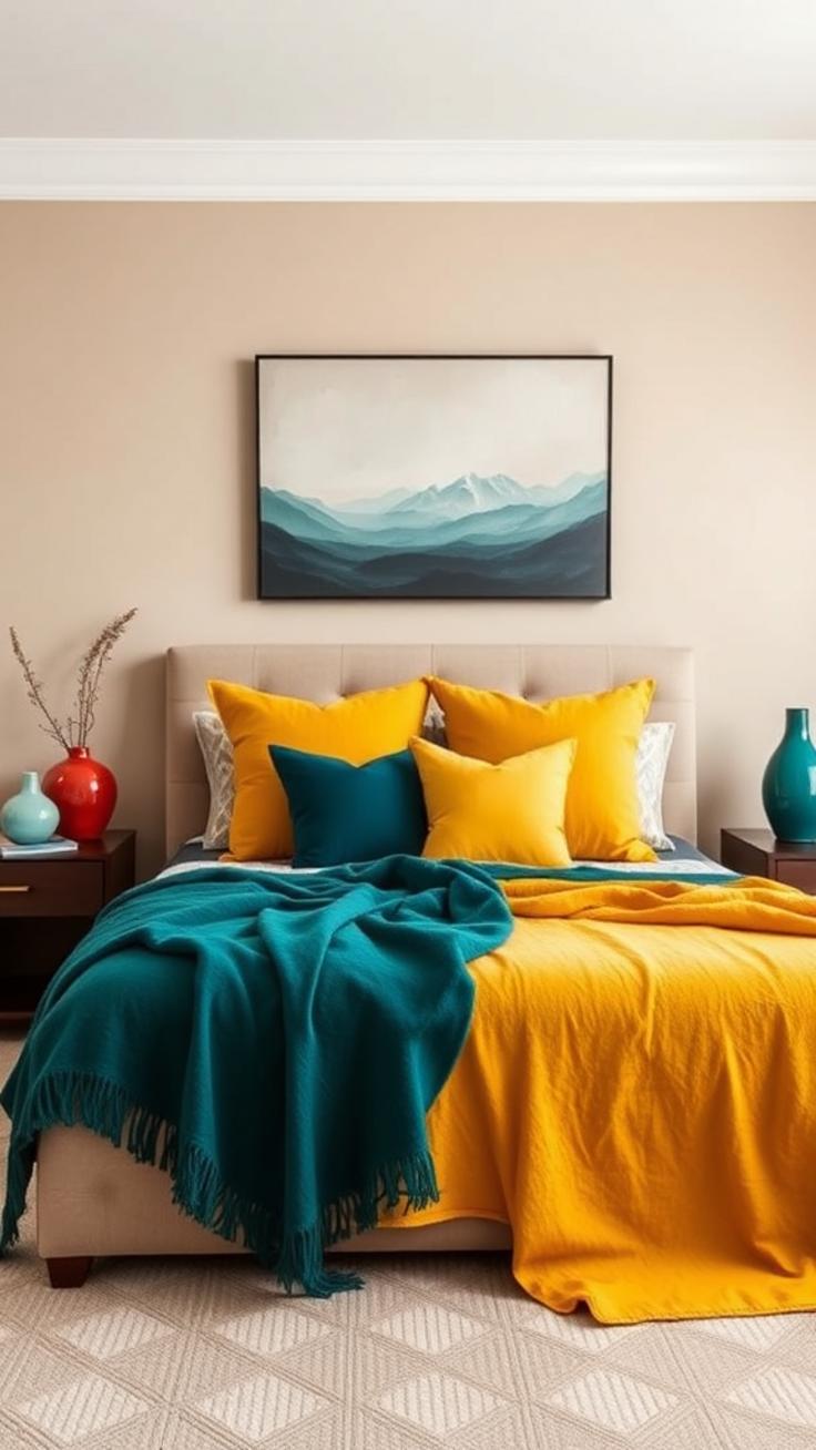 - Kissen und Decken in kräftigem Senfgelb oder Petrolblau als lebendige Kontrapunkte auf einem neutralen Sofa oder Bett.