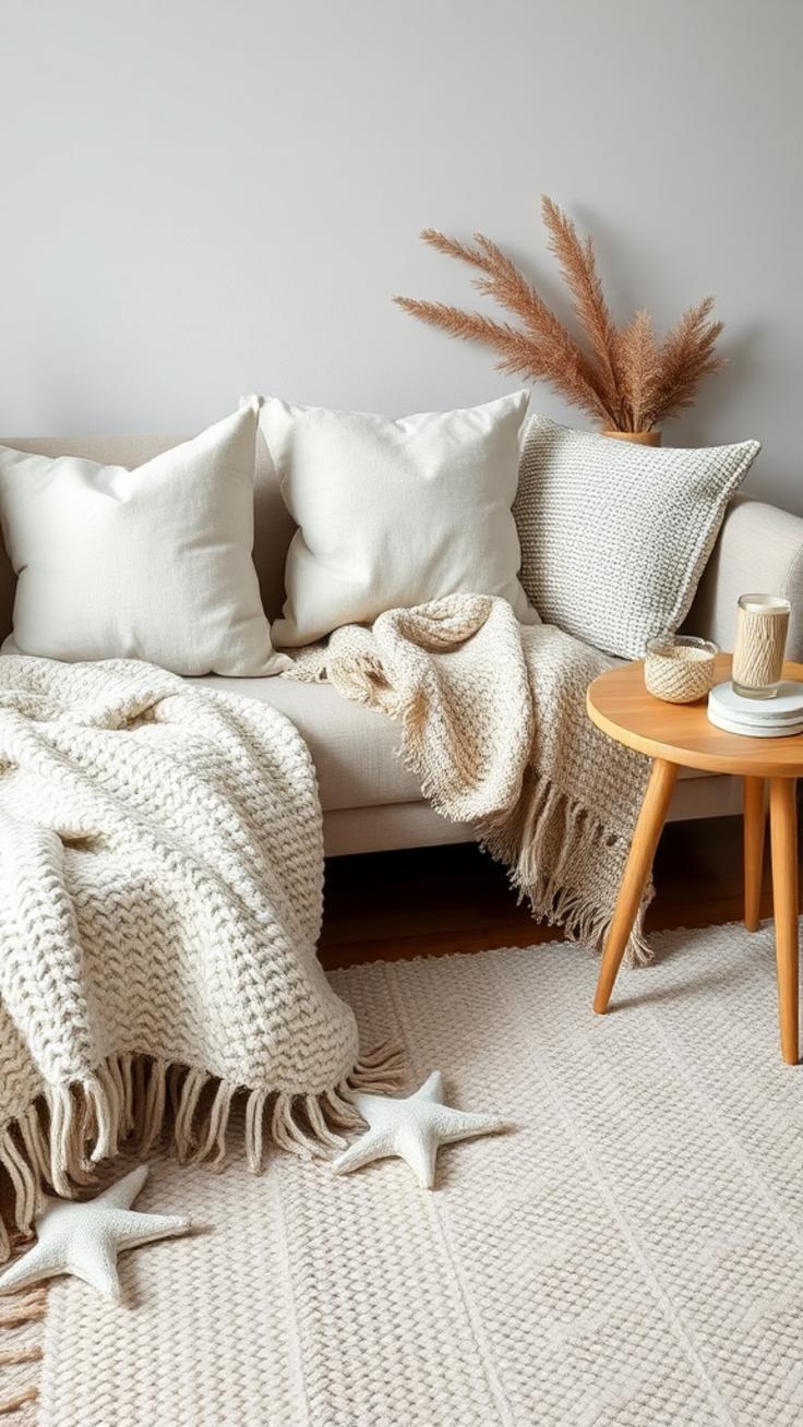 - Kissen mit verschiedenen Texturen und natürlichen Farben