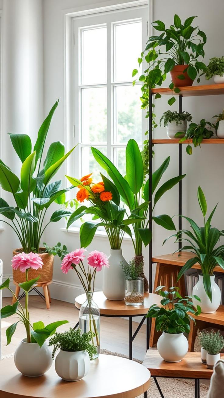 Natürliche Pflanzen und Blumen zur Belebung des Wohnzimmers