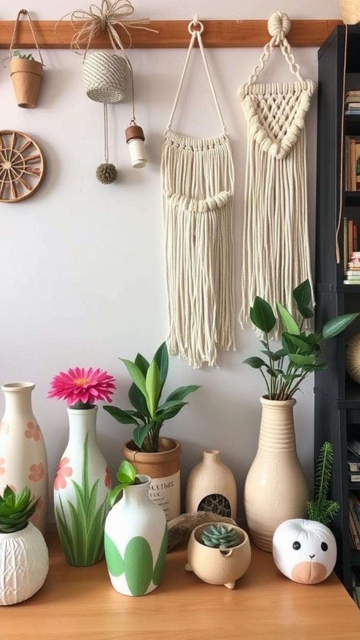 - Makramee- und Textilkunst an Wand und Möbeln