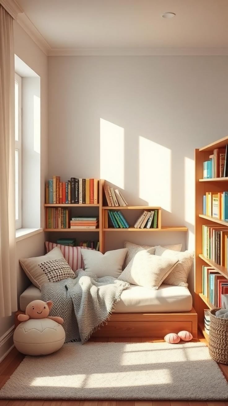 Die Gestaltung kann auf unterschiedliche Themen abgestimmt werden – von einem gemütlichen Zelt, das an eine kleine Höhle erinnert, bis hin zu einem Baumhaus-Ambiente. Mit kindgerechten Regalen in Griffhöhe für Lieblingsbücher wird die Ecke abrundet und animiert zum eigenständigen Lesen. Pflanzen oder kleine Dekorationselemente sorgen für Frische und Wohnlichkeit.