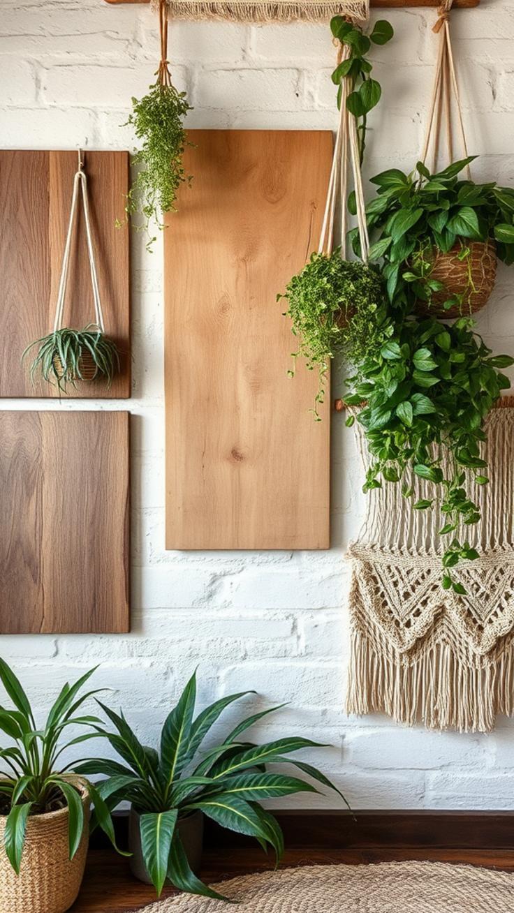 Natürliche Elemente wie Holz, Pflanzen und Stoffe in die Wandgestaltung integrieren