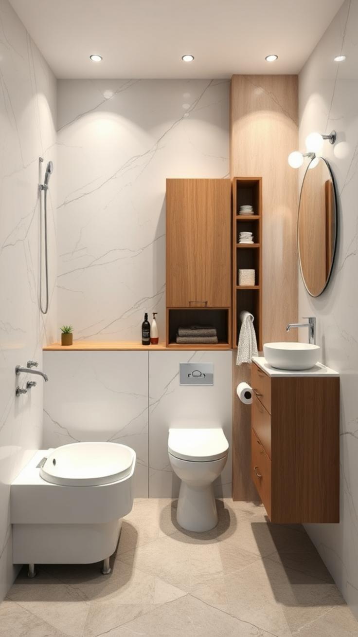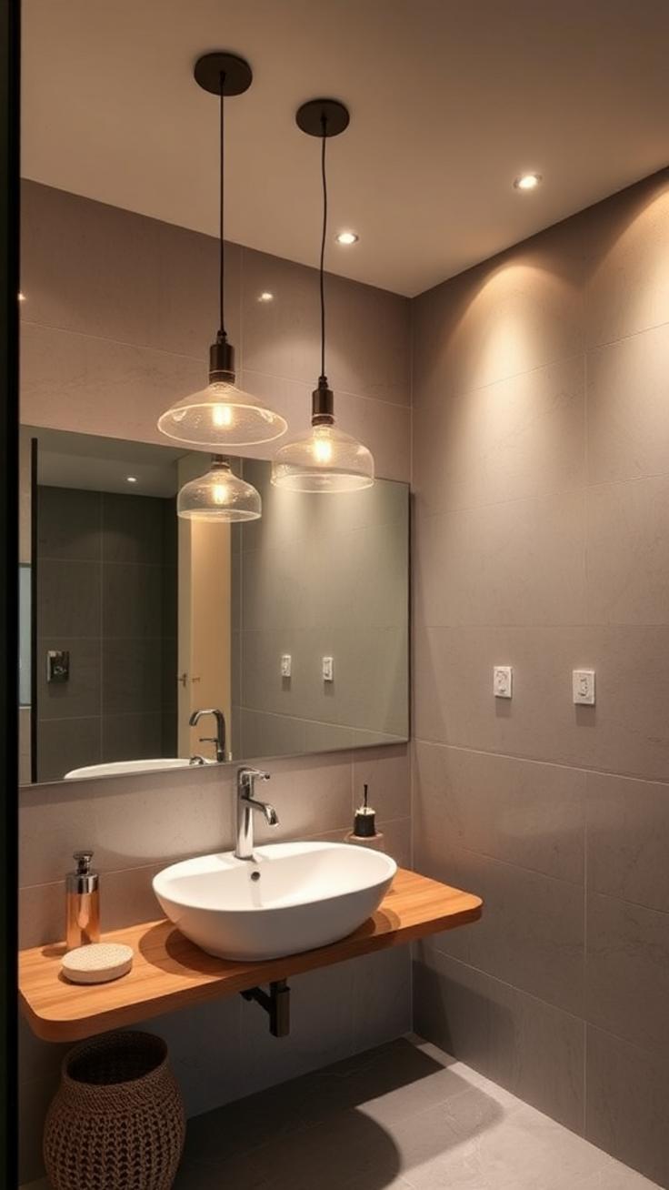 Durch die Kombination mehrerer Lichtquellen wird das Badezimmer nicht nur funktional beleuchtet, sondern erhält eine elegante und entspannende Schönheit, die zu einem luxuriösen Erlebnis beiträgt.