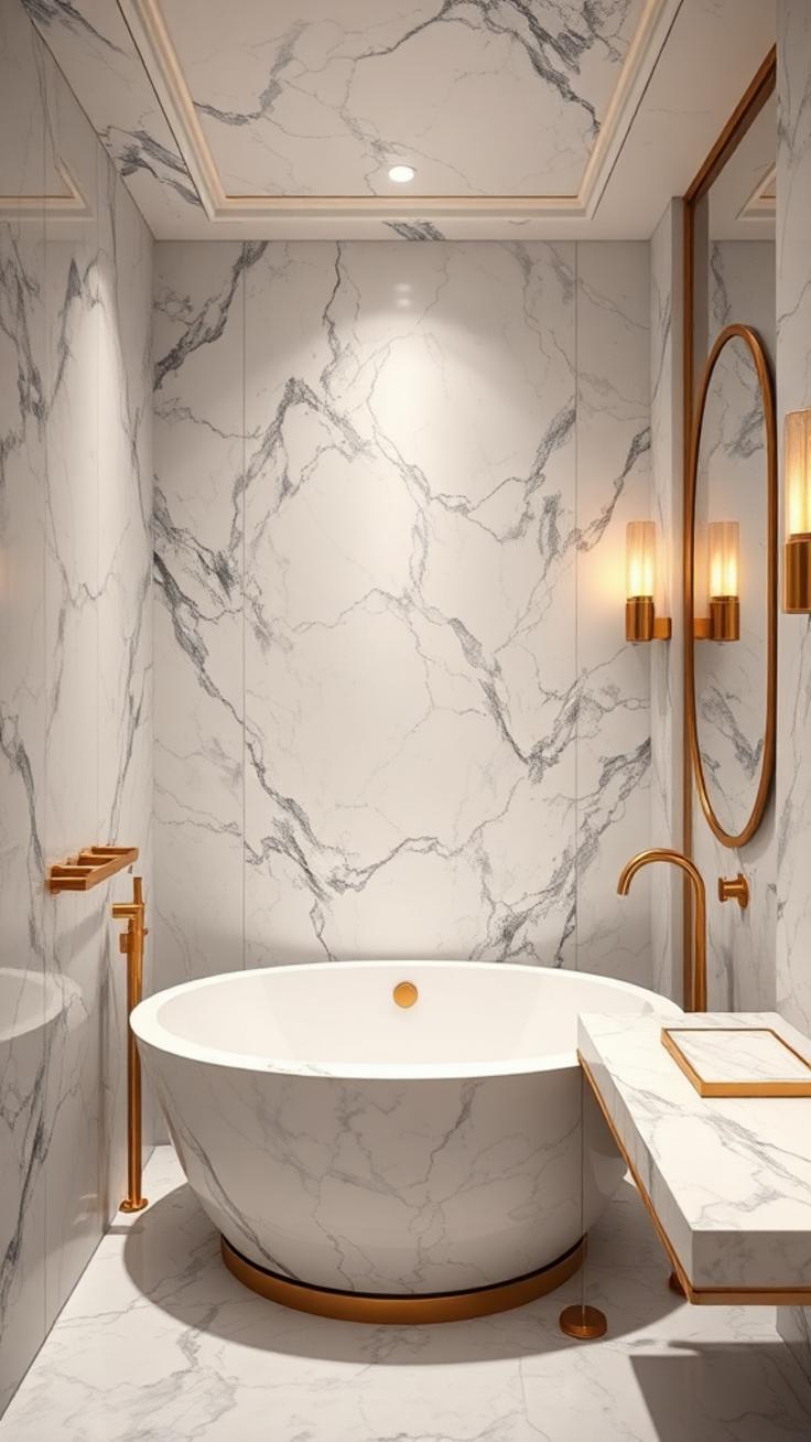 Inspiration für edle Materialien zeigt sich in der geschickten Kombination verschiedener Texturen und Oberflächen. So entsteht ein ausgewogenes, luxuriöses Badezimmerambiente, das gleichzeitig Gemütlichkeit ausstrahlt.