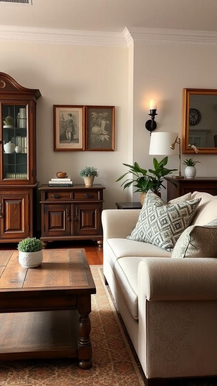 - Setzen Sie Akzente mit einzelnen charakterstarken Vintage-Möbeln, wie einem ausladenden Sessel oder einer antiken Kommode.