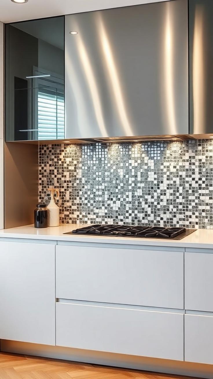 Metallische Akzente aus Edelstahl, Kupfer oder Messing bringen modernen Glanz und eignen sich perfekt für den Industrie- oder Loft-Stil. Metallflächen sind robust, einfach zu reinigen und können als Teil des Backsplash auch mit integrierter Beleuchtung kombiniert werden.