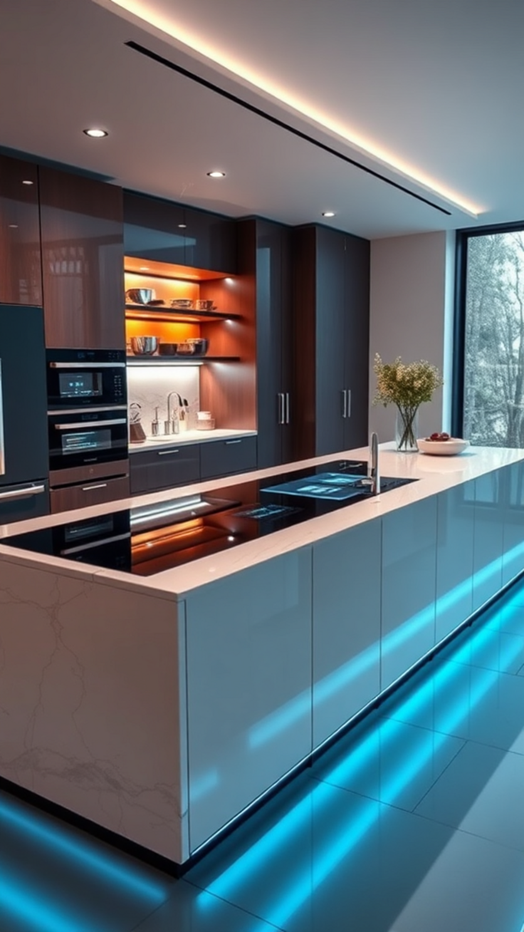 - LED-Strip-Lichtleisten unter Arbeitsplattenkanten für subtilen Raumglanz