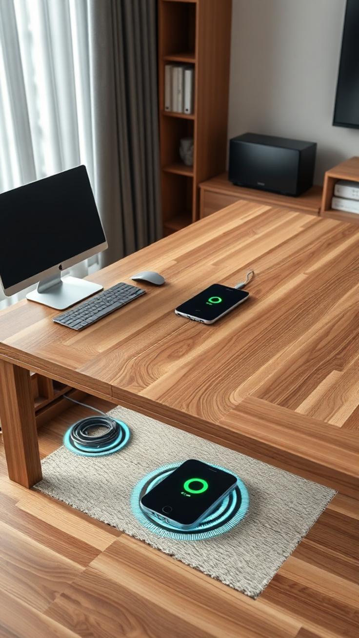Im Homeoffice oder im Arbeitszimmer ist ein aufgeräumter Schreibtisch wichtig sowohl für die Effizienz als auch die Ästhetik. Unsichtbare Ladestationen bieten hier eine elegante Lösung, um Smartphones, Tablets oder andere Geräte während der Arbeit kabellos aufzuladen, ohne dass ein unordentlicher Kabelsalat entsteht.