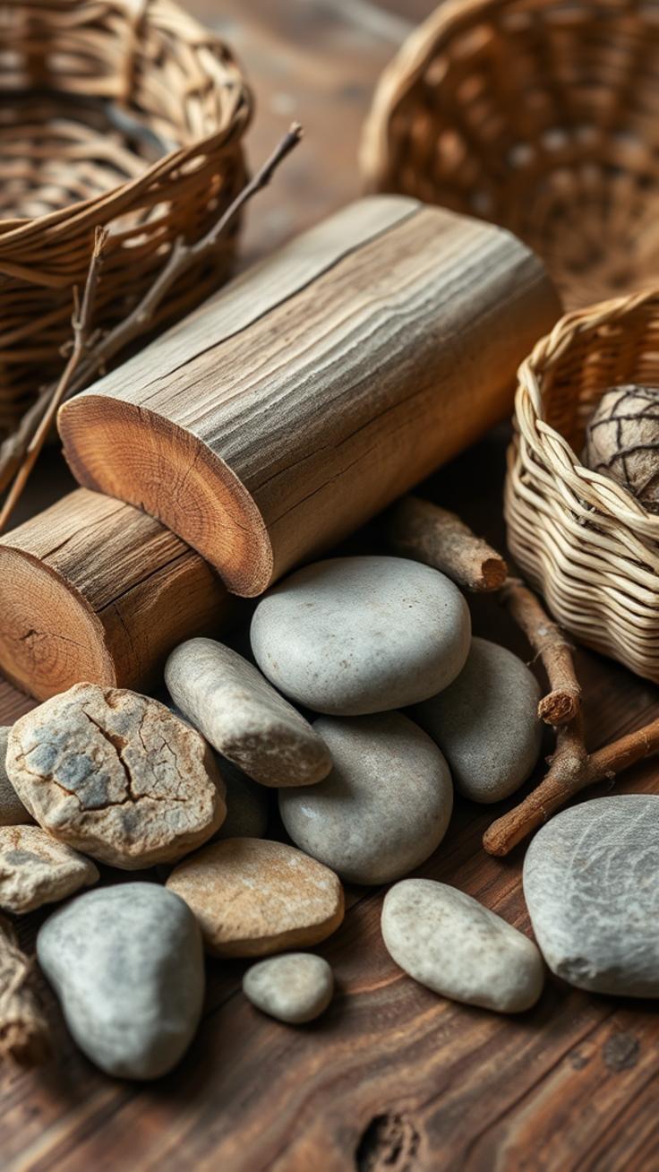 - Natürliche Elemente wie Tannenzapfen, Rinde, Zweige