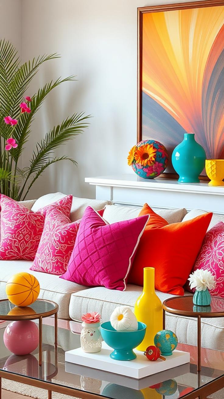 Der Sommer ist die Saison der Farben und Lebensfreude. Mit farbenfrohen Dekorationselementen können Sie Ihrem Wohnbereich im Handumdrehen eine fröhliche Note verleihen. Knallige Kissen, bunte Vasen oder dekorative Schalen wirken als fröhliche Hingucker und bringen Energie in jeden Raum.