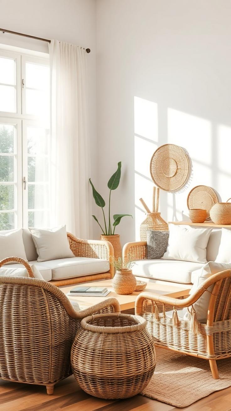 - Rattankörbe als Stauraum oder Pflanzgefäße