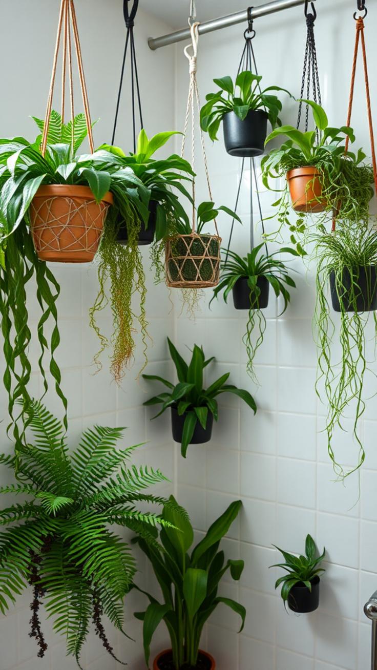 Hängende Pflanzen bieten nicht nur optische, sondern auch praktische Vorteile, indem sie das Badezimmer in eine grüne Wohlfühl-Oase verwandeln.