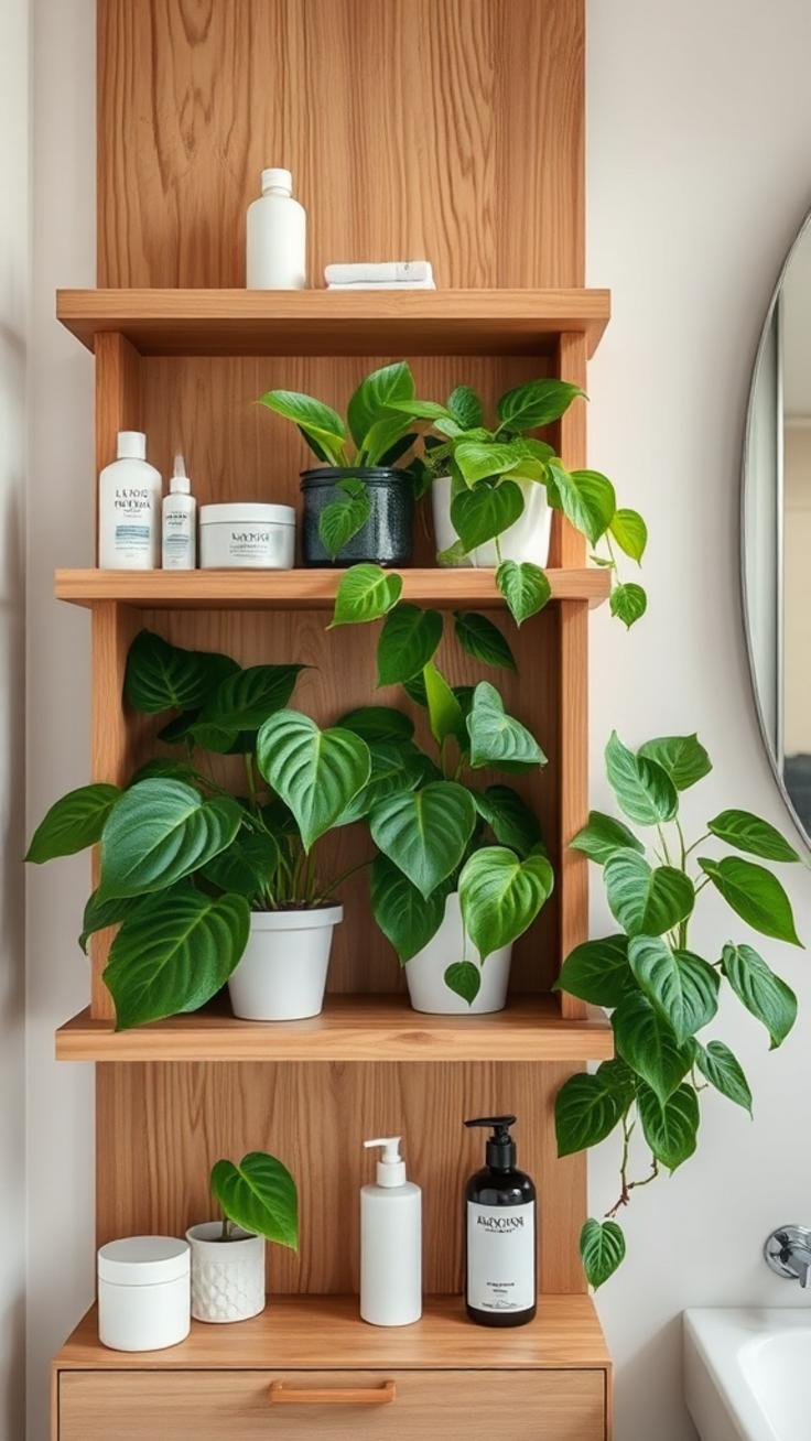 Offene Badregale lassen sich so zum grünen Highlight im Badezimmer verwandeln und schaffen eine harmonische Verbindung von Funktion und Stil.
