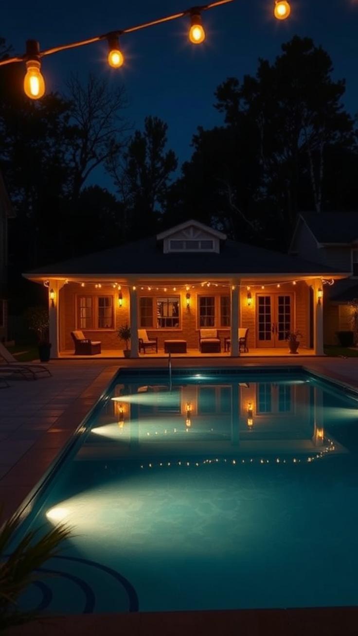Die richtige Beleuchtung trägt entscheidend zur Atmosphäre eines Poolhauses im Cabana Stil bei. Warmweiße LED-Lichter lassen den Außenbereich auch nachts einladend und gemütlich wirken. Eine Kombination aus verschiedenen Lichtquellen wie Steh-, Tisch- und Hängelampen schafft eine flexible Stimmung für alle Situationen – von ausgelassener Poolparty bis ruhigem Abendessen.