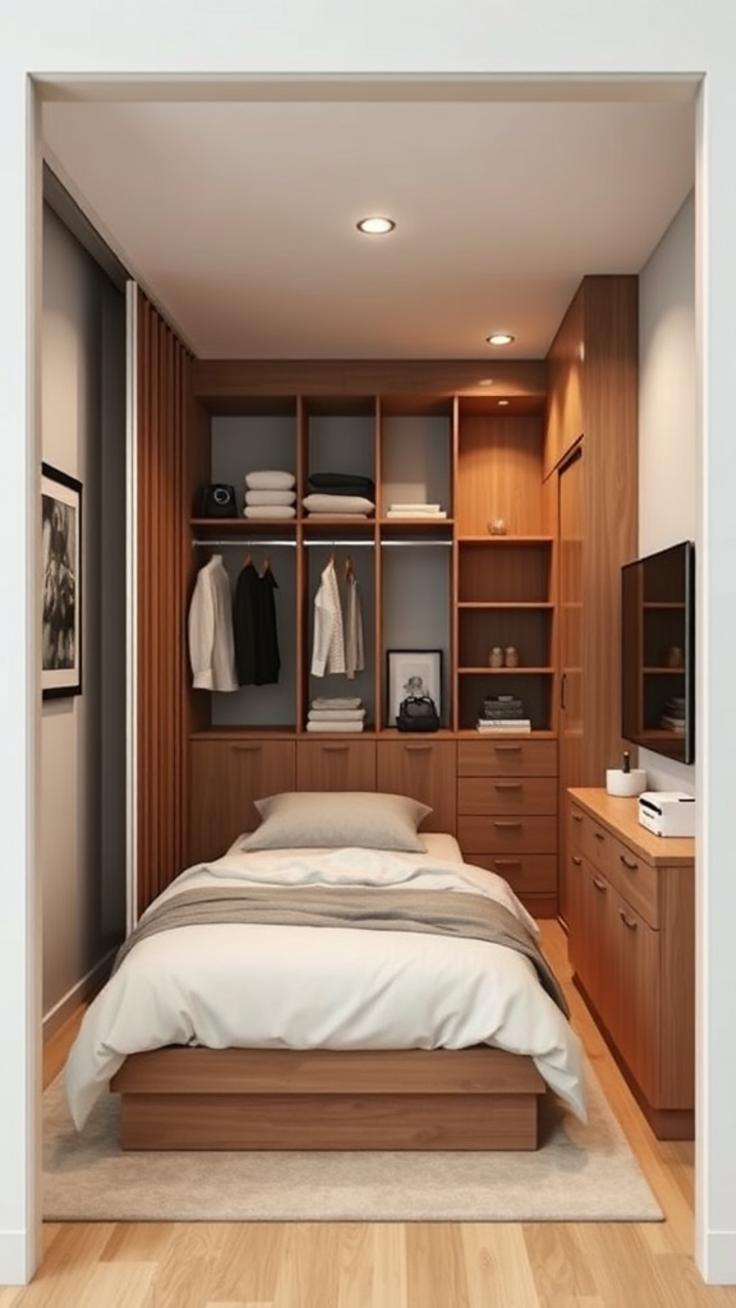 In kleinen Schlafzimmern ist ein begehbarer Kleiderschrank eine Herausforderung – aber mit cleveren Lösungen kann er zum großzügigen Stauraum werden, der gleichzeitig das Zimmer optisch nicht erdrückt.