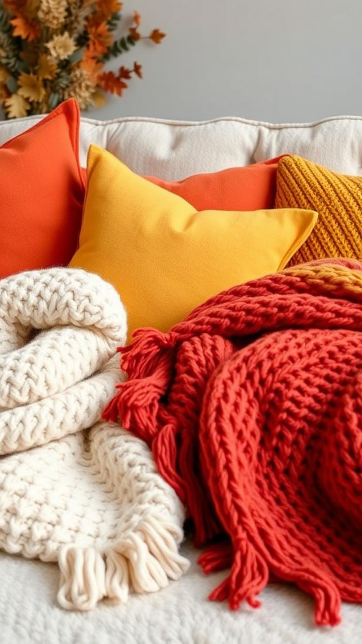 Farbenfrohe Kissen und Decken für Gemütlichkeit