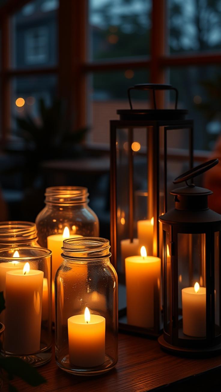 - Kerzen in Laternen oder Windlichtern