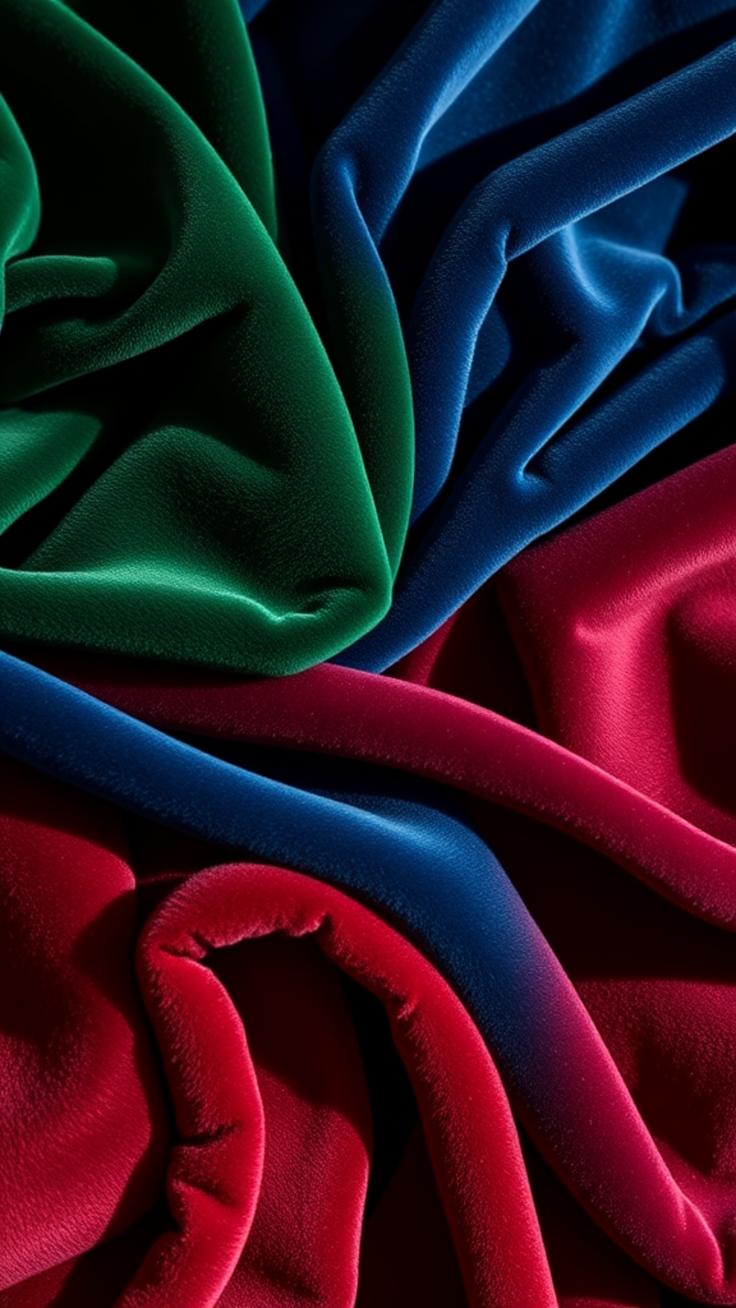 Die Wahl der richtigen Farbpalette ist entscheidend, um die samtigen Texturen optimal zur Geltung zu bringen. Warme Töne wie Senfgelb, Terrakotta oder Rostrot kontrastieren wunderbar mit dem weichen Schimmer des Materials und setzen elegante Akzente. Dunkle, satte Farben wie Smaragdgrün, Mitternachtsblau oder Burgunderrot unterstreichen die Luxuriösität von Samt und ergeben eine stilvolle, dramatische Wirkung.