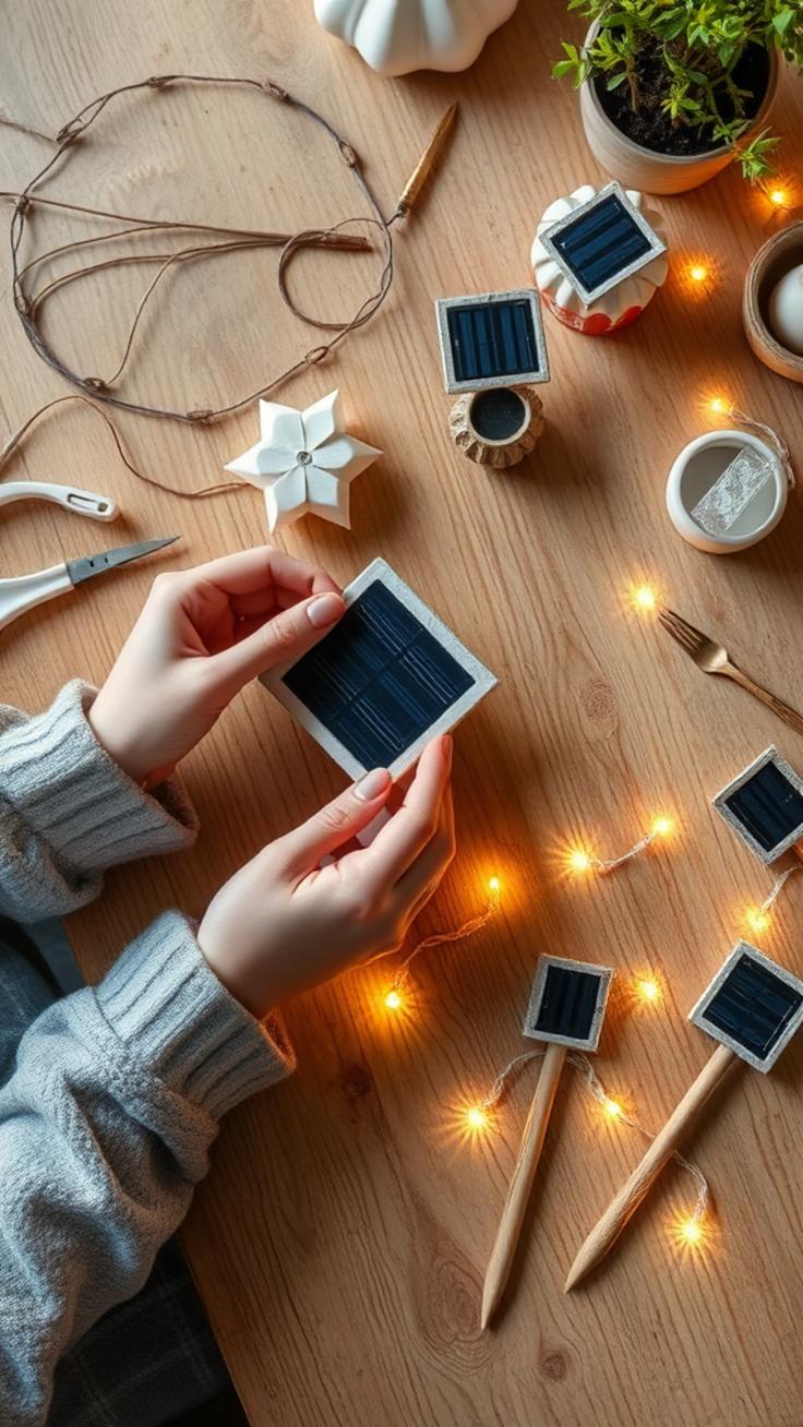 - Solarbetriebene Pflanzenlampen, die tagsüber Energie sammeln und abends sanftes Licht spenden