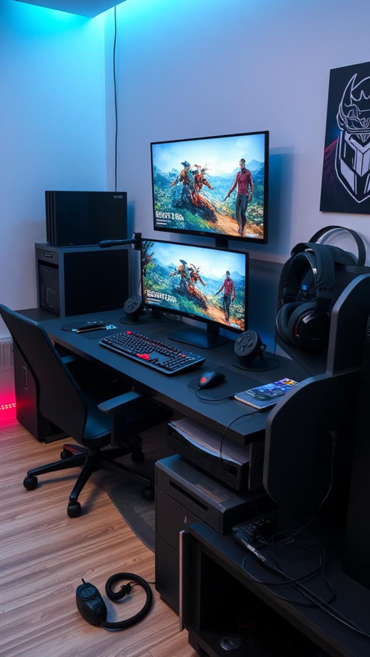 Dieser Bereich sollte so gestaltet sein, dass die Technik im Mittelpunkt steht, aber die restliche Raumgestaltung nicht dominiert. Modulare Möbel und flexible Regale bieten Spielraum für wechselnde technische Ansprüche. Ein zusätzlicher Gaming-Tisch oder höhenverstellbare Schreibtische sorgen für ergonomischen Komfort während langer Sessions.