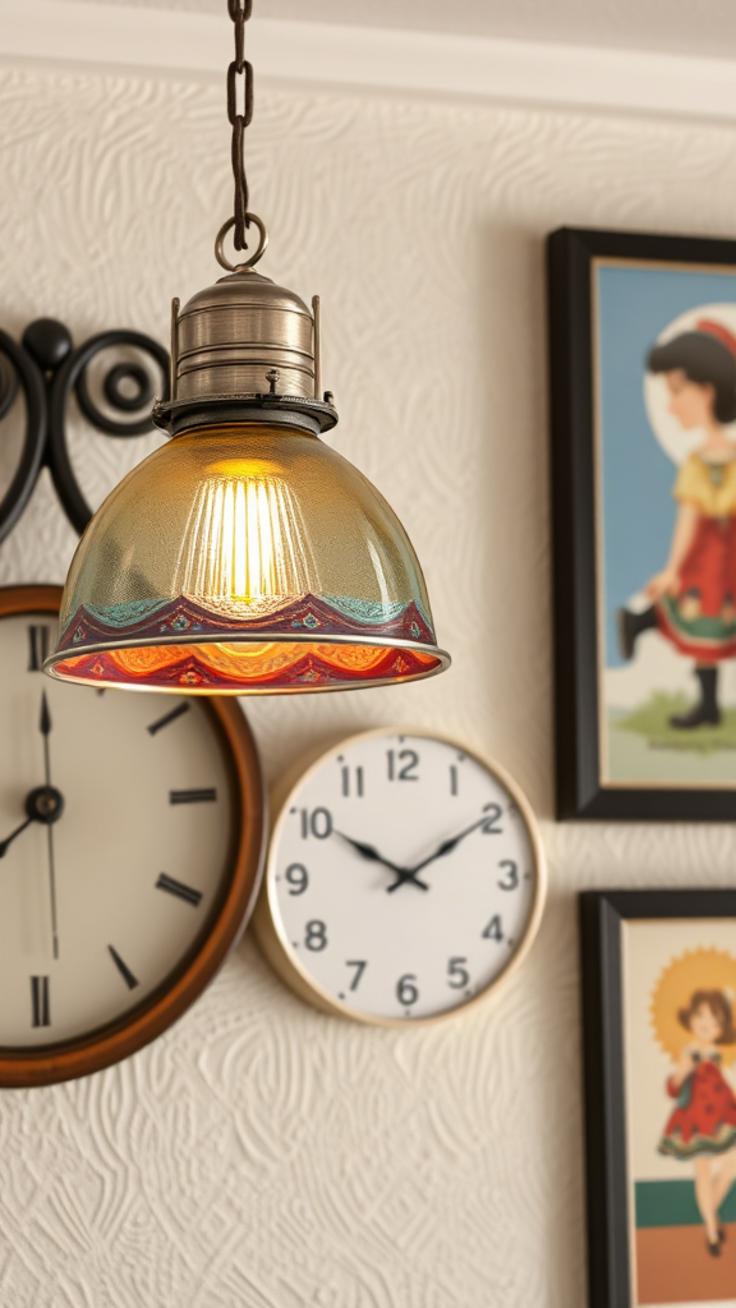 Dekorative Akzente: Vintage Lampen, Uhren und Wandbilder