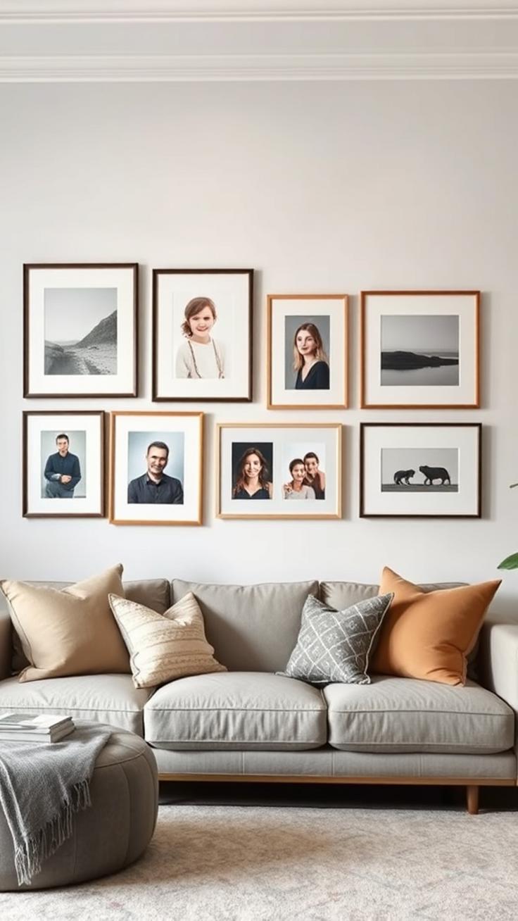 - Themenorientierte Galeriewände, z.B. Familienerinnerungen oder Reisefotos